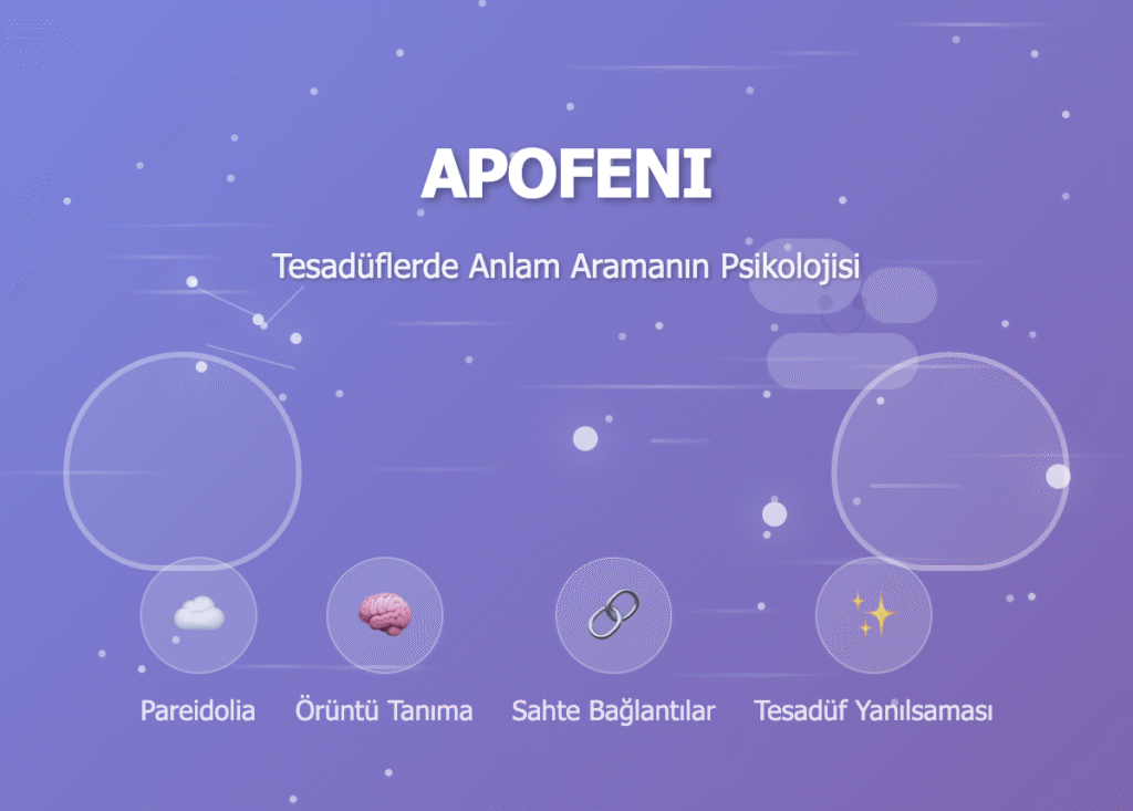 Apofeni, aslında beynimizin doğal örüntü tanıma yeteneğinin “fazla çalışmasıdır”. Normalde bizi tehlikelerden koruyan bu mekanizma, bazen olmayan bağları görmemize neden olur.